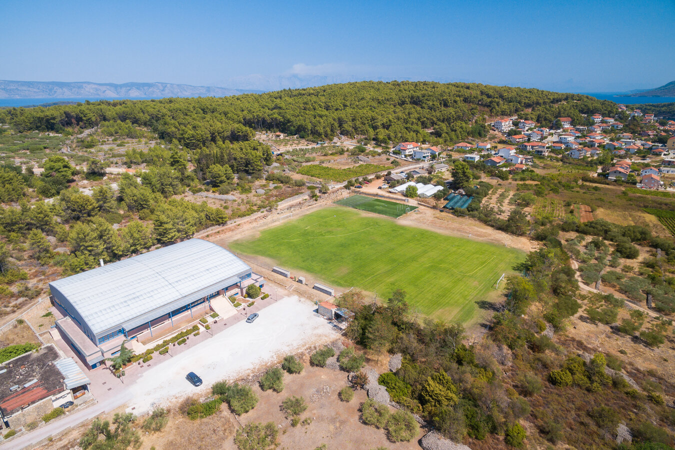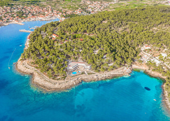 Znajduje się bezpośrednio przy wybrzeżu krystalicznie czystego Adriatyku. Usytuowany z dala od wszelkiego zgiełku, przy pięknej nadmorskiej promenadzie zaledwie 10 minut spaceru od ścisłego centrum miasteczka JELSA. Ze względu na położenie ośrodka na niedużym zboczu schodzącym ku morzu z okien i tarasów oraz hotelowego basenu roztacza się wspaniały widok na morze i leżące po jego drugiej stronie Riwierę Makarską, sąsiednią wyspę Brač oraz górujące na tym terenie wzgórze Biokovo.