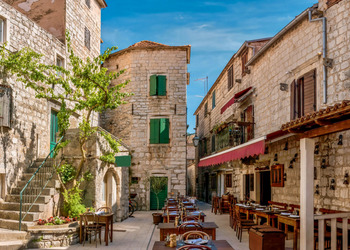 Pozostawienie bagaży na terenie portu promowego. Obiad grupowy we wskazanej restauracji. Opcjonalnie - Zwiedzanie antycznego, historycznego centrum Splitu z przewodnikiem *10 EUR/osoba.