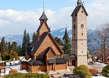 Przejazd do Karpacza. Zwiedzanie Świątyni Wang - ewangelicki kościół parafialny w Karpaczu w Karkonoszach, przeniesiony w 1842 z miejscowości Vang, leżącej nad jeziorem Vangsmjøsa w Norwegii.