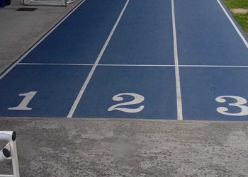 - bieżnia lekkoatletyczna o długości 80 m + niecka do skoków w dal z nowoczesną nawierzchnią: 17 mm Mondo Sportflex