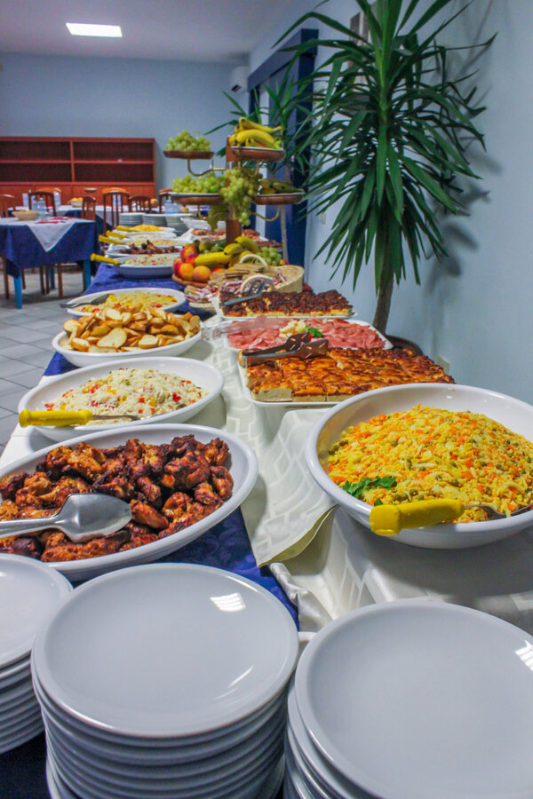 Trzy posiłki dziennie – śniadania, obiady oraz kolacje. Śniadania w postaci bufetu. Na obiad i kolację wybór z dwóch dań pierwszych i dwóch/trzech dań drugich oraz bufet sałatkowo-warzywny.